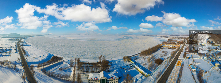 图片标题: 航拍佳木斯松花江沿岸封江风光