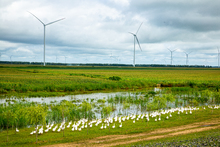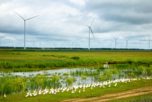 图片标题: 绿地里的鹅群