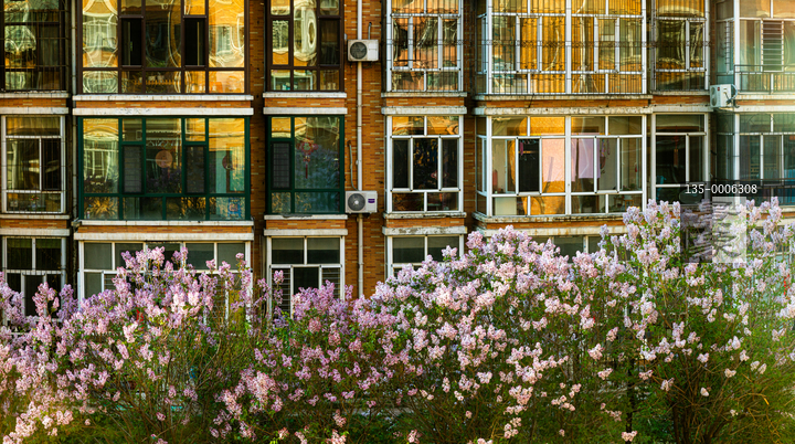 图片标题: 楼前盛开的丁香花