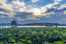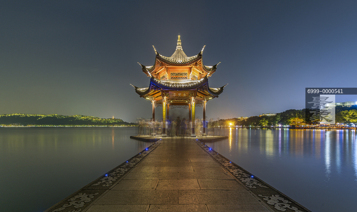 图片标题:     杭州西湖集贤亭晚霞日落夜景