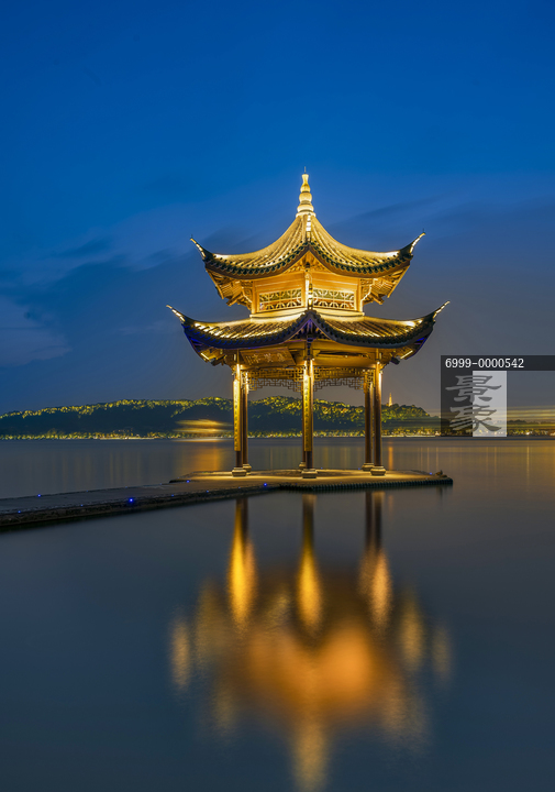 图片标题: 杭州西湖集贤亭晚霞日落夜景