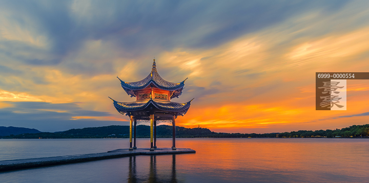 图片标题:     杭州西湖集贤亭火烧云晚霞夜景