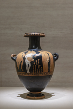 图片标题: 国博-美的多元-古希腊的艺术与生活-黑底红画陶迪诺斯罐-雅典圣道区域-公元前420年