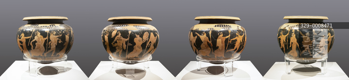 图片标题: 国博-美的多元-古希腊的艺术与生活-黑底红画陶迪诺斯罐-雅典圣道区域-公元前420年