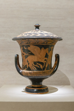图片标题: 国博-美的多元-古希腊的艺术与生活-阿提卡黑底红画陶水罐-埃维亚岛-公元前375年