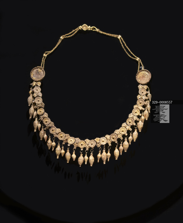 图片标题:     国博-美的多元-古希腊的艺术与生活-镀金陶土项链-公元前4世纪