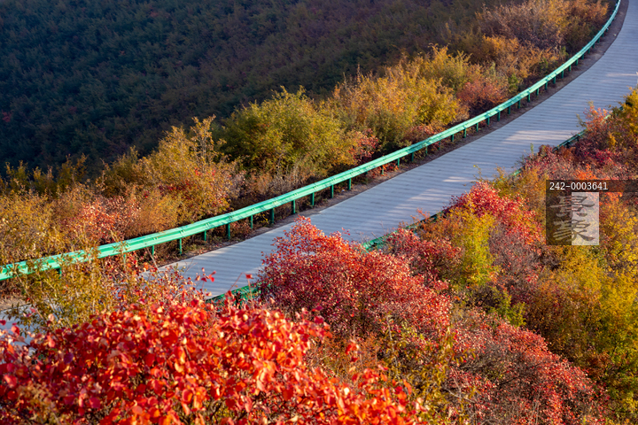 图片标题: 穿行在红叶中的山区公路