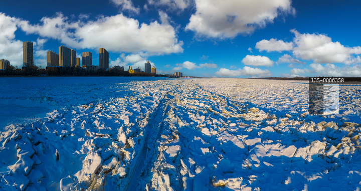 图片标题: 航拍松花江佳木斯封江冰景风光