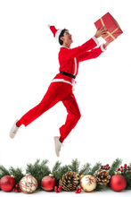 图片标题: 穿着圣诞服的快乐年轻情侣