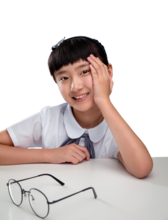 图片标题: 小学女生在思考