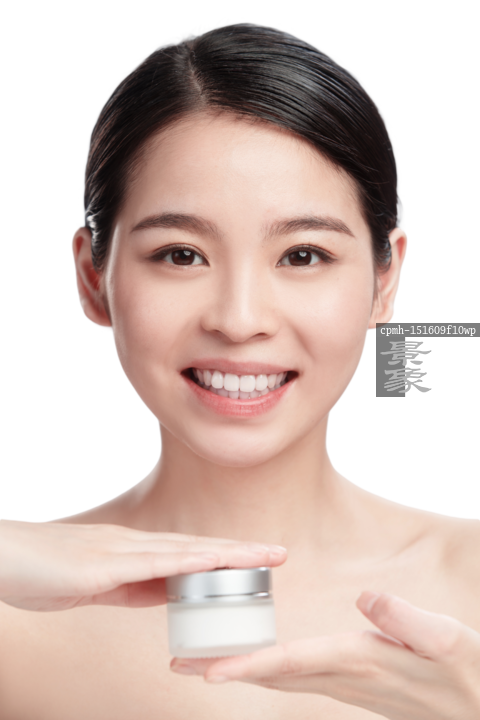 图片标题: 青年女人拿着护肤品