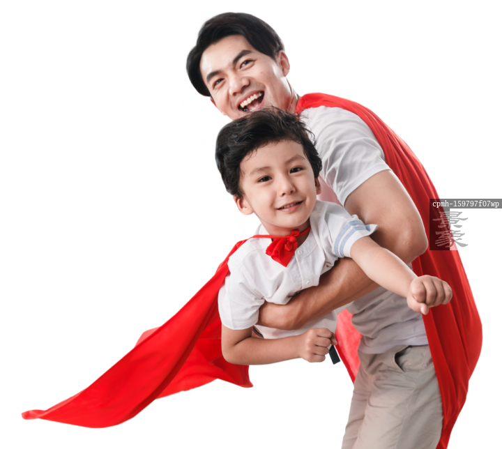 图片标题: 快乐的父子在扮演超人