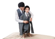 图片标题: 快乐的父子在扮演超人