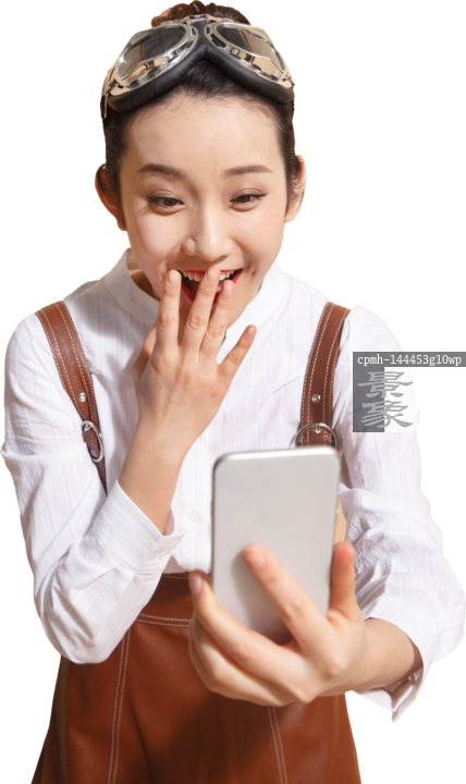 图片标题: 青年女人拿着手机