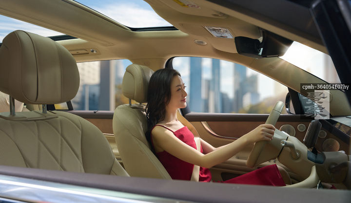 图片标题: 驾车的青年女人