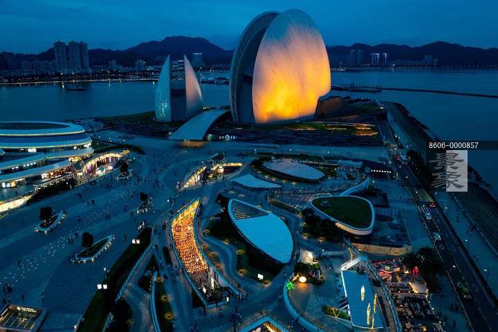 图片标题: 中国广东珠海市大剧院日月贝夜景