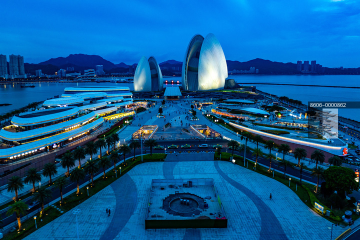 图片标题: 中国广东珠海市大剧院日月贝夜景
