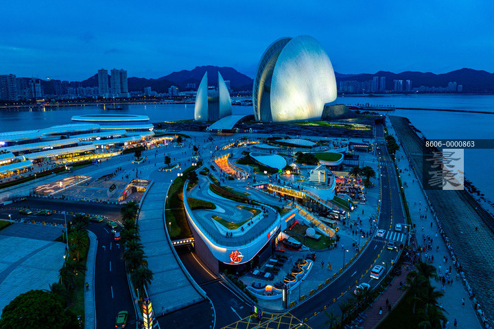 图片标题: 中国广东珠海市大剧院日月贝夜景