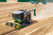 图片标题: 河南滑县:收割机收获小麦