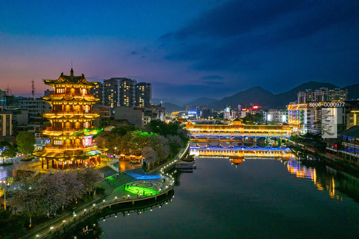 图片标题: 中国广西蒙山县长寿阁夜景