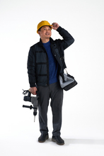 图片标题: 使用冲击钻的建筑工人
