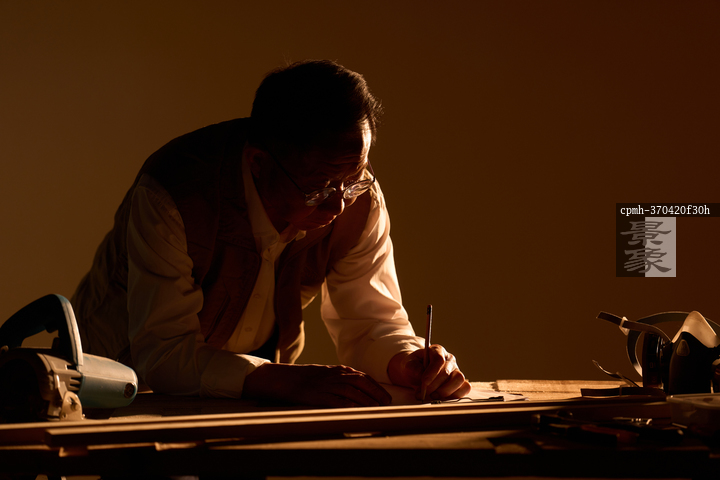图片标题: 一名木工工人裁切木板