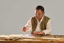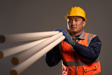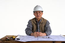 图片标题: 一名工程师研究施工图纸