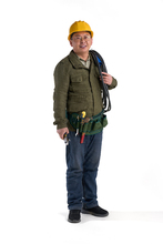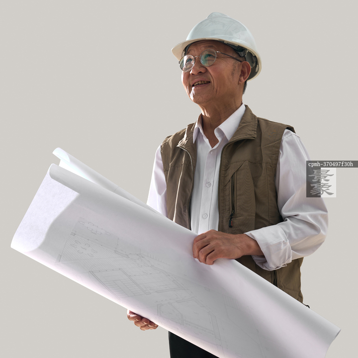 图片标题: 一名老年工程师研究施工图纸