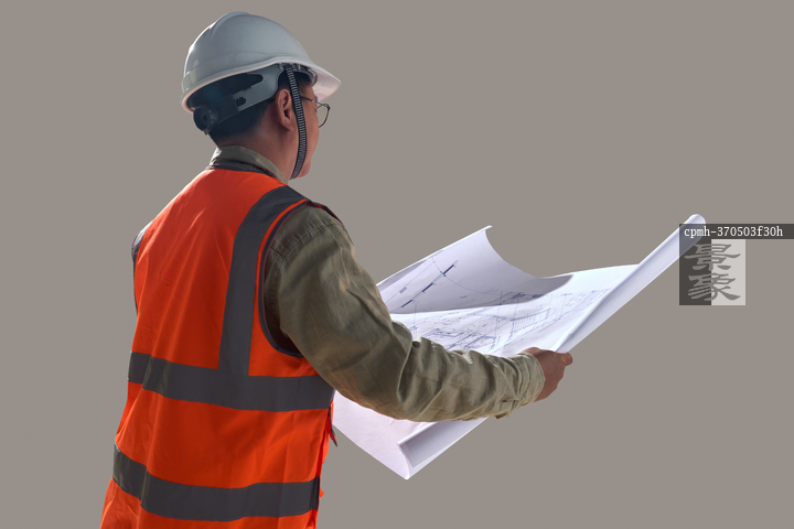 图片标题: 一名工程师研究施工图纸