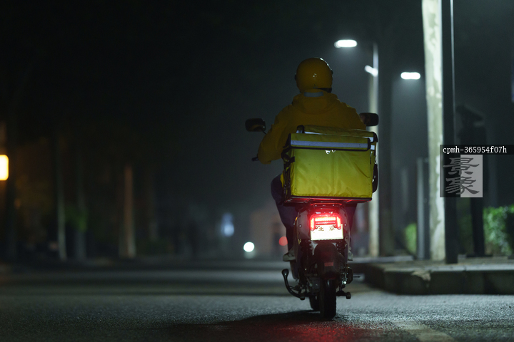 图片标题: 夜里配送中的外卖小哥