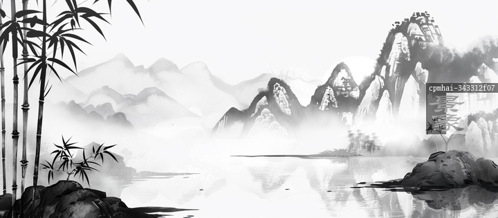 图片标题:     黑白水墨山水中国画