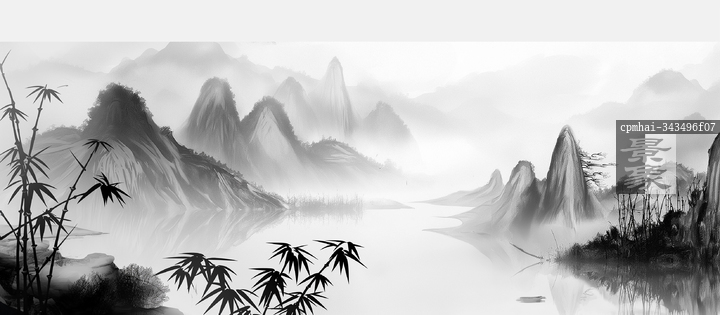 图片标题:     黑白水墨山水中国画