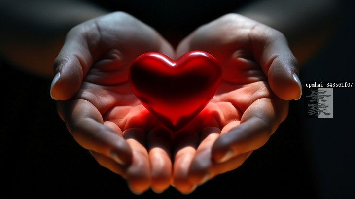 图片标题: 温暖心灵的红色爱心在双手中被珍惜与呵护,传递深厚情感与关怀。