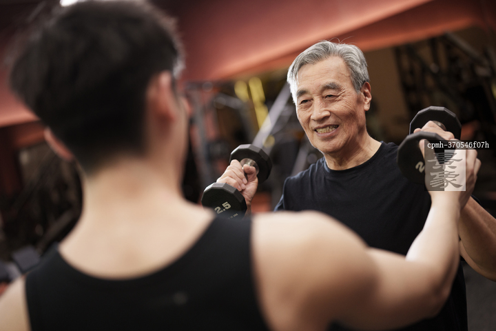 图片标题:     一位老年男性在健身房上私教课
