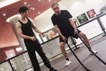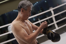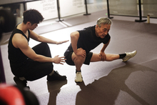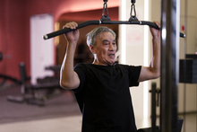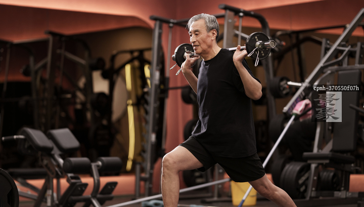 图片标题: 一位老年男性在健身房锻炼