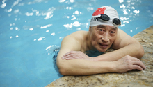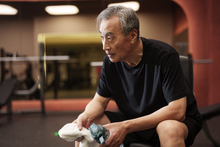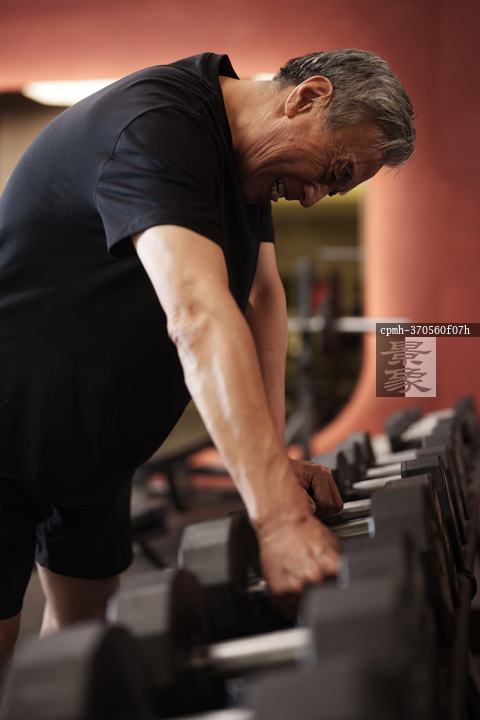图片标题: 一位老年男性在健身房锻炼