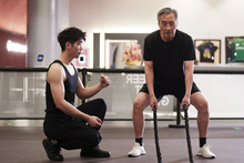 图片标题: 一位老年男性在健身房上私教课