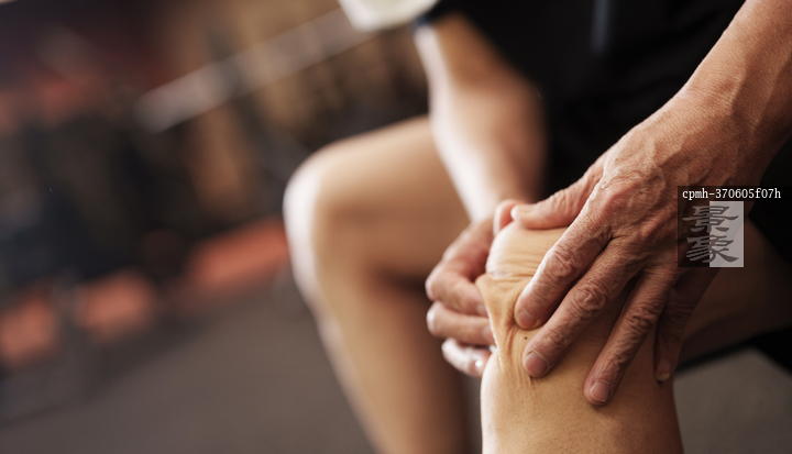 图片标题: 在健身房里锻炼的一位老年人腿部受伤
