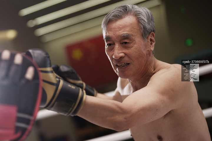 图片标题: 一位老年男性练习拳击