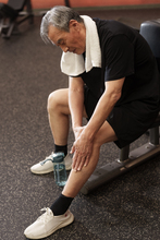 图片标题: 一位老年男性练习拳击