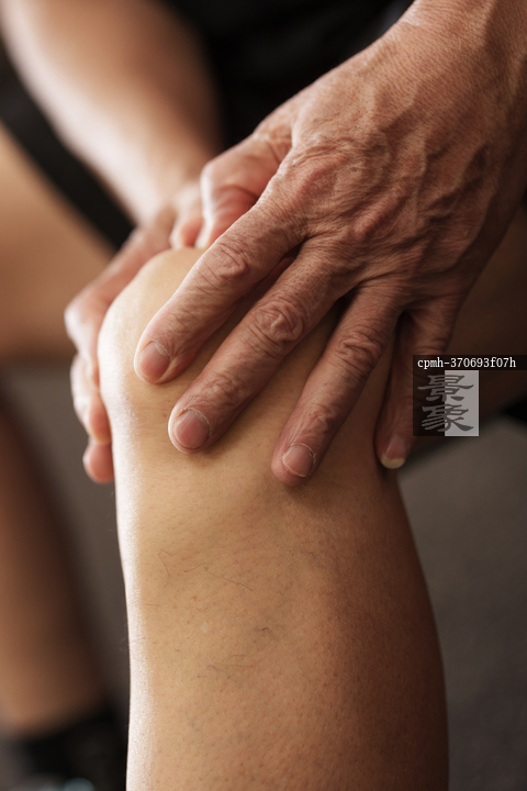 图片标题: 在健身房里锻炼的一位老年人腿部受伤