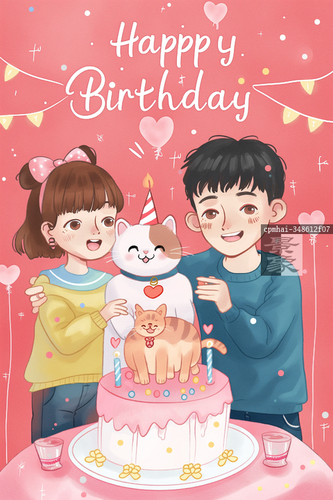 图片标题: 生日快乐的温馨祝福插画