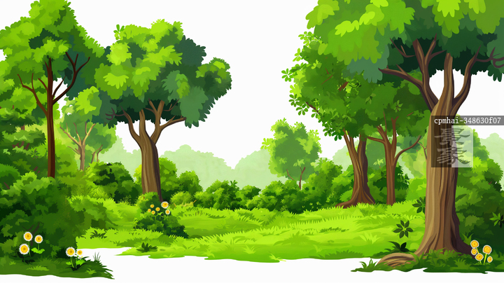 图片标题: 绿色植被中充满生机的森林景观展现自然之美与色彩