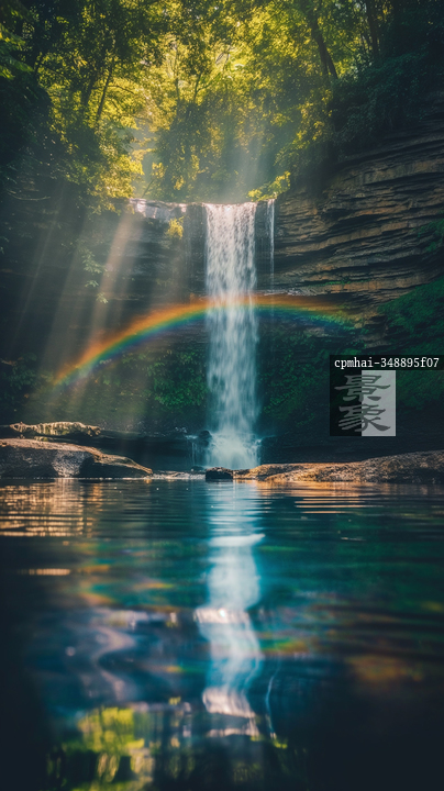 图片标题: 彩虹瀑布映湖光