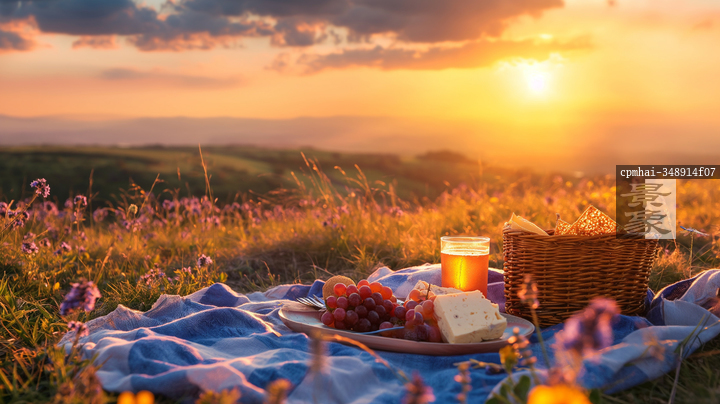 图片标题: 田野日落时分的野餐