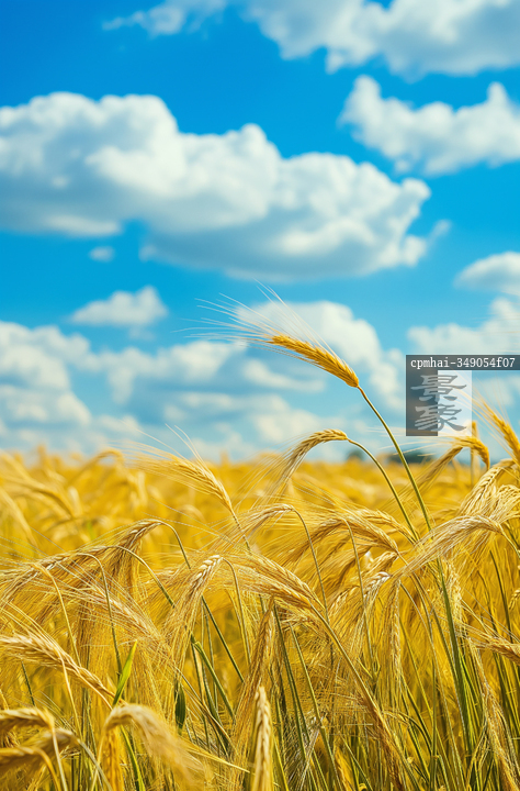 图片标题: 麦田在蓝天映衬下的宁静风光