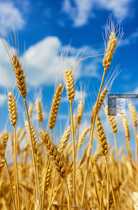 图片标题:     麦田在蓝天映衬下的宁静风光