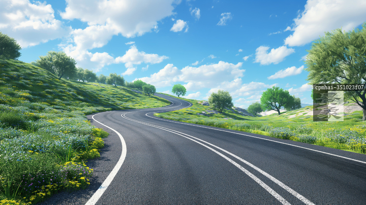 图片标题: 蜿蜒公路与绿野