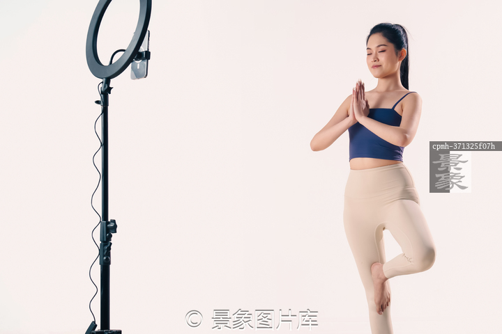 图片标题:     年轻的亚洲女性在做在线运动健身教学