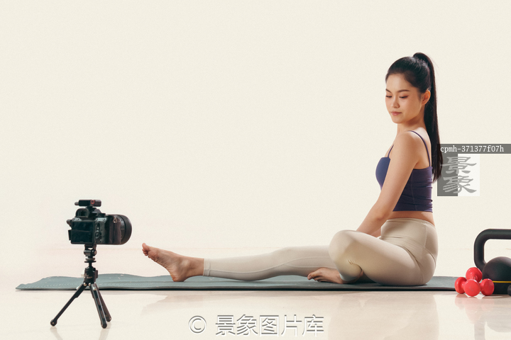 图片标题:     年轻的亚洲女性在做在线运动健身教学